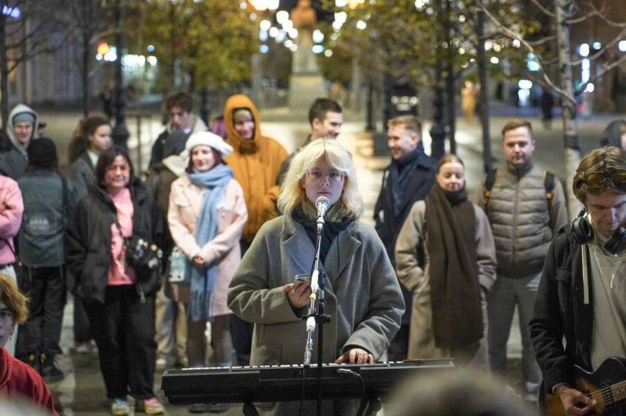 Выступление уличных музыкантов собрало большое количество слушателей. На видеозаписях молодые люди танцуют и поют строчки из «Кооператива Лебединое озеро», среди которых есть такие куплеты: